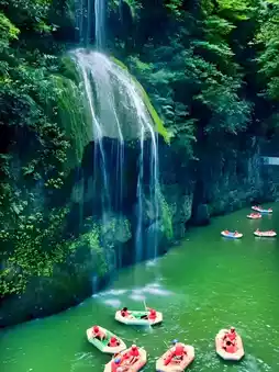 Guizhou’s "wildest rafting" is no exaggeration! The 8-kilometer route features whirlpools that spin your raft 360° and calm "jade-green zones" where you can spot macaques leaping through trees. The moment waves hit your face, all the summer heat washes away—just hold tight to your paddle, as a spontaneous water battle with fellow rafters might break out!