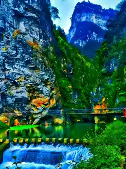 Walk the cliff-hugging plank roads with vertical rock faces on one side and deep emerald valleys on the other. Along the way, encounter over 10 waterfalls like "Celestial Fairy" and "Golden Bell Falls," their mist cooling your skin. At the "Glowworm Rock" section during rainy season, you might spot fireflies at dusk, like stars scattered across the cliffs.