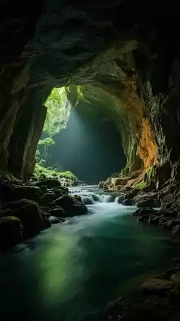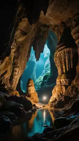 - 🧑🤝🧑 Inside the cave: flashlight shining on stalactites, parent-child group photo