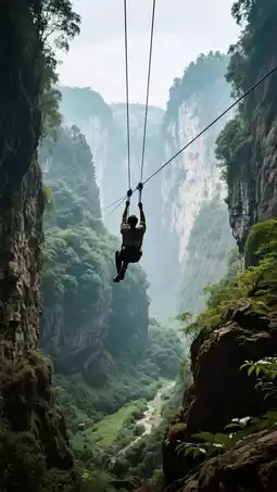 - 🛝 Zip line moment: capture kids spreading arms "flying" over the tiankeng