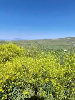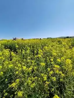 At Stone Spring Station, wild rapeseed blossoms cascade like liquid gold across the slopes. We await our fellow travelers for the next bus, wading through waist-high waves of flowers. The wind sweeps by—a thousand stems rustle and whisper, while the snap of a camera startles butterflies into swirling flecks of gold dust. The mountain road in the distance still lies empty, yet sunlight has steeped our waiting in honey, crystallized upon every trembling petal.
