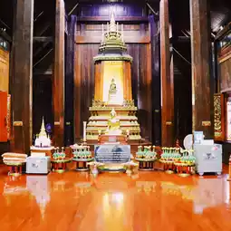 There is a beautiful Isan-style chapel made of a thousand-colored wood, which is the only one in the Northeast. It was built in 2009 by Luang Por Phra Khru Si Pariyat Chotitham, who designed and built it according to his imagination, using the Lan Xang art style as the main principle, mixed with Lanna art. As for the wood carving sculpture patterns, they were created by skilled craftsmen from the North and craftsmen from the Northeast.