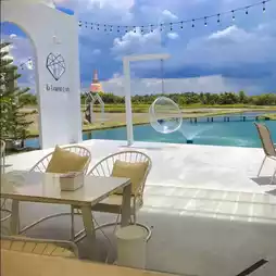 Escape the heat of the city and come sit and sip coffee in the middle of a rice field? 💚 "Jai Klang Na Cafe" is a super chill cafe with a million-dollar view, with a heart-shaped pond and a view of the pagoda behind it. The atmosphere is great. There are both indoor / outdoor zones with plenty of photo spots. 📸✨