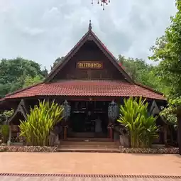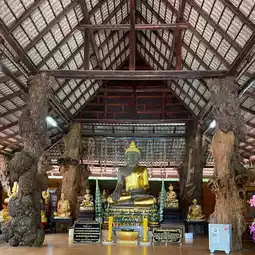 I had the opportunity to visit Wat Sawang Hua Nakham and pay my respects. The temple atmosphere is wonderful, especially the wooden chapel. If you have the chance, stop by and take a look. The temple is beautiful, with a wooden pavilion, very peaceful, and has a subtle northern vibe. Many people come to pay their respects to Thao Wessuwan. The temple is beautiful and clean, with beautiful pavilions and structures reminiscent of northern art. The wood is abundant, giving it a unique and beautiful look. People come to pray all day long, but it's not crowded. There's ample parking in front of the temple, making it convenient and convenient. There are also clean restrooms.