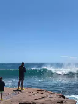 Rare pink sandy beach! The rocky platform is also great for fishing 🎣