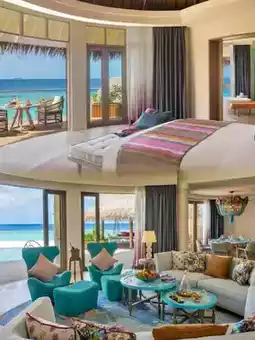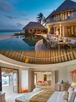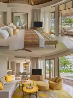 There are only 26 villas on the island, the basic area of the guest room starts from 300 square meters, each villa is inspired by the enduring form of the nautilus shell, and the curves and spirals run through the entire design structure. It is said that this is what the royal family of ancient Maldives lived in.