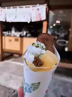 I bookmarked the almond big Buddha crepe before going to the bay warehouse, the shape is super photo-taking 😙😙 I went to know that the flavors will keep changing, and thought it would be divided into regular models and limited-time models (?!) before I saw people are white peach and chestnut both flavors are super suitable for me! But this time to switch to pineapple and cherry is not very suitable 🥲 barely chose pineapple to check in the taste is good ~ but the price is not cheap a portion to about 1000yen! The drinks are very beautiful taste is normal, mainly for check-in 🤭