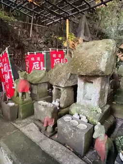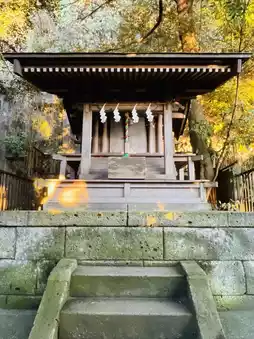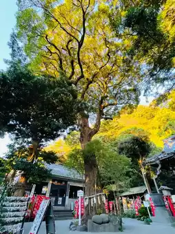 Within the grounds are Shinra Saburo's Tedamaishi stone and a magnificent sacred tree.