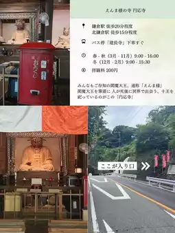 6 Enma Daio's temple Ennoji Temple 🕛Spring to Autumn (March to November) 9:00-16:00 Winter (December to February) 9:00-15:30 ...Temple where the Ten Kings who will be encountered after death are enshrined Important cultural property is also on display