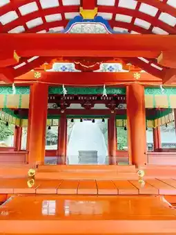 A famous anecdote is Shizuka Gozen's dance from "Azuma Kagami." When she performed the dance at the command of Minamoto no Yoritomo, she sang a song expressing her love for Yoshitsune, enraging him. Shizuka Gozen's life was saved thanks to the intercession of Yoritomo's wife, Hojo Masako. Today, the hall is used for various ceremonies and events, such as the Hatchet Ceremony, the Dedication Ceremony, and the Iris Festival, as well as weddings. The grounds are bustling with attendees on festival days.