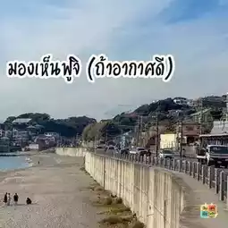 🚆 Kamakurakokomae Station: The train station with the sea as the backdrop, in the scene of Slamdunk. This place is quite popular. There are a lot of foreign tourists. It is also a road that cars pass through. If you come late, you won't be able to take beautiful pictures. There are only heads of people 😂 and you have to be careful of cars that are running. There are officers blowing whistles to prevent people from stopping in the middle of the crosswalk. I felt sorry for the officers. At this point, Toon just took pictures from the side and then crossed over to see the beach and Fuji.