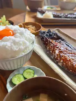 #Kamakura #KamakuraCafe #Kanagawa #Breakfast #Rice with raw egg on top #Dried fish
