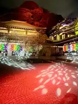 Not only flowers, but also the autumn leaves at night and the illuminated main hall can be enjoyed, making this a very beautiful and glittering temple, a recommended spot for autumn with many things to see. The limited-time glowing temple seal is also recommended😊