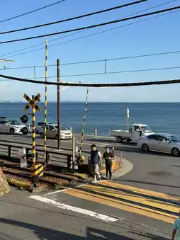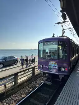 In the afternoon, take the Enoden train to Kamakura High School Front Station, a popular spot for many tourists. With a beautiful coastline in front of you and trains passing by, the whole scene feels like a movie! You can also see the entire railway track, and it's nice to take a walk along the way!
