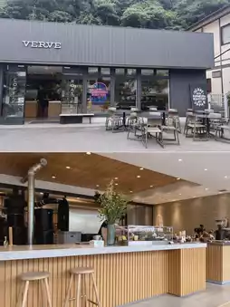 A modern cafe in front of Kita-Kamakura Station with cute latte art 🤍