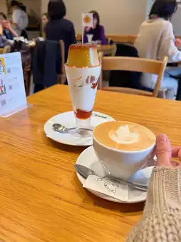 The cafe latte is also cutely latte art