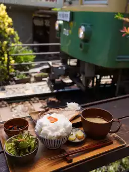Eat egg-topped rice while watching the Enoshima Electric Railway. You have to whip the egg whites yourself to make them fluffy, but it's quite hard work! It's a truly luxurious meal. It's a popular shop, so you have to line up!