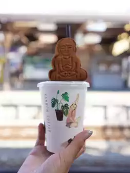A cafe with delicious coffee and big Buddha-shaped cookies.