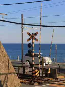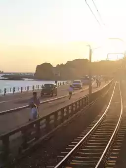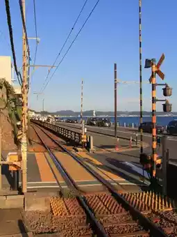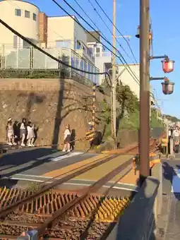 Kamakura High School Station is a famous spot near Tokyo, located in Kanagawa Prefecture. The way to get there is by taking the Enoshima Electric Railway! This station gained its fame from the scenes in the anime 'Slam Dunk,' so many people come here to check it out! The railway and the ocean in the background create a beautiful picture. This time, I came here specifically to take some photos of the railway station, the train, and the sunset! The light rail mainly uses yellow and black colors! The sunset is particularly enchanting, with golden light illuminating the entire railway. When the train arrives, it creates a very special feeling in the photos!