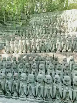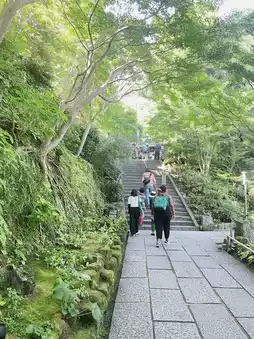 This temple is surrounded by a lush atmosphere of various trees. It is lush and green, and there is a pond that makes you feel cool. 🍃 Along the way to the temple, there are small statues. At the top, there is also a viewpoint where you can see the sea and Kamakura.