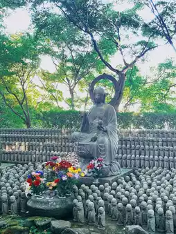Hasedera Temple, an ancient Buddhist temple of the Jodo sect, has the largest gilded wooden statue of Kannon in Japan, located in Kamakura.