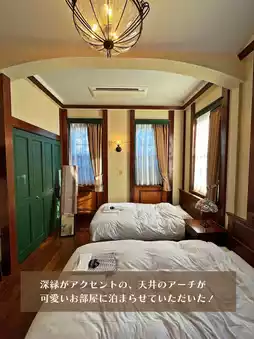 The interior has a lot of old-fashioned interior design, such as sash windows, old glass, lamps, and floors, and it is a hotel that gives off a Taisho-era romantic vibe!