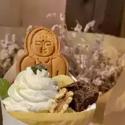 ▶️The crepes with cute Buddha biscuits are popular!!