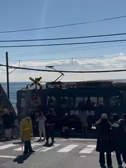 Arriving at Kamakura Mae Station, the spot becomes a perfect location for train enthusiasts and photographers alike. The station's vintage charm, paired with the rhythmic movement of the trains, makes for an ideal photo opportunity. The passing trains offer unique perspectives and angles, whether you're snapping shots of the trains zooming by or capturing the beauty of the surrounding area.