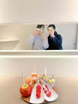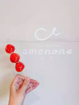 Today, we will introduce "Fruit Candy STAND amenone" where you can eat sweets that look like jewels 💎🍎✨️ Located in a convenient location about 10 minutes walk from Kamakura Station, the shop is marked by a stylish light bulb that looks like a large candy apple 🍓 In the calm atmosphere of the shop based on white, you can enjoy jewel-like fruit candy 🍭 The fruits carefully selected for each season at the market every morning are covered in 1.6mm-thick candy, making this beautiful candy that can be called artistic. The collaboration of the crunchy texture of the candy and the firm fruit is exquisite ✨️ In addition to apples from Aomori Prefecture and cute-looking strawberries, we were able to enjoy kiwi fruit and mandarin orange candy this season 🍊 If you want to enjoy the taste of the ingredients themselves, we recommend the plain flavor, and if you want to be greedy and enjoy one more flavor, we recommend choosing your favorite from amenone's original flavors seasoned with tea, cocoa, etc.! My favorites were the Kinu Hojicha candy apple and the Yogurt flavored mandarin candy 🩷 Both flavors bring out the deliciousness of the fruit, and I want to come back to eat them again 👏 They also have a full menu of drinks such as tea and coffee to wash down the sweet candy, so please try ordering those as well 🫖