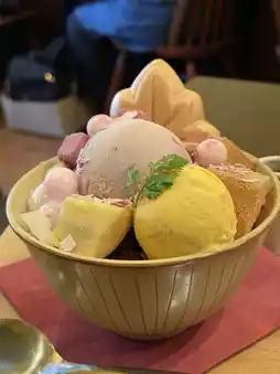 A popular parfait where you can enjoy sweet potatoes as well as shiratama and warabi mochi