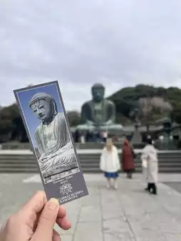 Take the Enoden Railway and get off at Hase Station. It's about a seven-minute walk to the destination. You will first arrive at the entrance of Kamakura Great Buddha Hall Kotoku-in Temple. The plaque of Niomon reads "Daiisan" and there is a ticket office next to it. You can go in after buying the ticket and you will see the Great Buddha of Kamakura when you walk in.