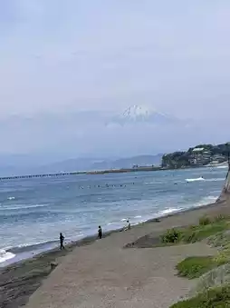 Take the Enoden to see the sea, Mount Fuji looming over the sea