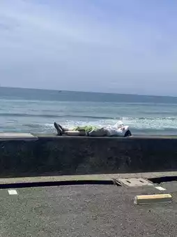 Japanese-style streets and skateboarding teenagers along the coastal road
