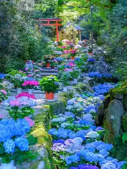 Highlights: 2,500 blue hydrangeas forming a "flower tunnel", stunning framed views through the "Window of Enlightenment"