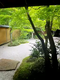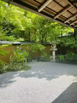 As you stroll through the beautiful garden, which changes with the seasons, you'll enjoy stunning views of the circular windowed teahouse, hydrangeas, the murmuring of a stream, fresh greenery, and the flower-shaped water basin. 🌿