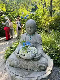 There's a spot where you can see hydrangeas in abundance in June. Because it's such a popular spot, the Enoshima Electric Railway and JR lines often have long lines on weekends. If you can manage your schedule, I recommend traveling on a weekday. It's also quite hot, even in June, so an umbrella is essential. 💦