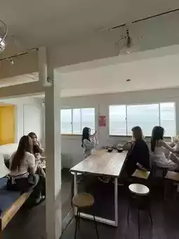 The cafe is located on the beach road. Order food and drinks on the first floor and then head up to the second floor. There aren't many tables, so if you go during peak hours, you might have to wait a bit. Personally, I like to sit at the bar by the window, where you can enjoy the view.