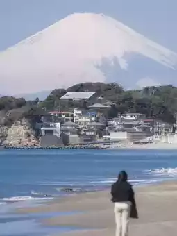 Stroll along the seaside with a view of Mt. Fuji at Shichirigahama Beach in Kamakura 🌊🗻