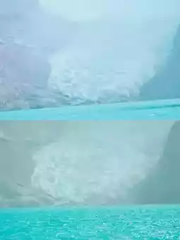 The cross-section of the glacier has a very dreamy and deep blue layer, like a sharp knife rising from the ground after the earth suddenly cracks. It's more like the beautiful tear marks of a falling planet.