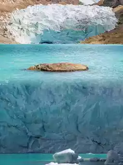 Above the glacier, the ice layer slowly spreads in a circular pattern like tree rings