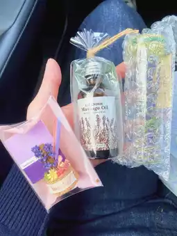 I bought flower decorations and lavender oil! The scent is very nice and soothing...!