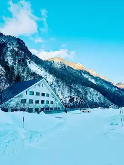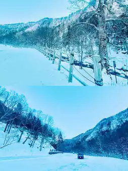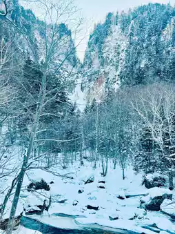 During winter in Hokkaido, Sounkyo transforms into a magical snow-covered wonderland, with even the famous Meteor Waterfall (Ryusei-no-taki) and Milky Way Waterfall (Ginga-no-taki) blanketed in ice and snow.