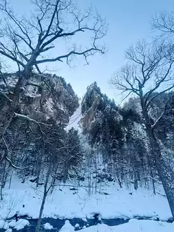 The Milky Way Waterfall, more winding compared to the Meteor Waterfall, cascades gently from above, resembling a galaxy spiraling through the mountains. In winter, the Milky Way Waterfall freezes into unique ice formations, appearing as natural works of art. The surrounding snow enhances the dreamlike scenery, evoking a sense of serene transcendence.