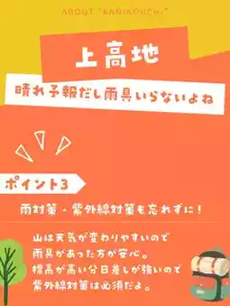 ☞ Always put one in your backpack before you start your walk. You can buy one in Kamikochi, but it's a bit pricey (around 200 yen)