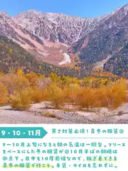 ● September, October, and November (Cold measures are essential! Mid-winter clothes are recommended)