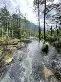 Kamikochi is a popular tourist destination located in the Northern Alps of Nagano Prefecture. Walking along the clear stream of Azusa River, you'll be soothed by the crystal-clear water and the surrounding mountain scenery. Majestic mountains such as the Hotaka Range and Mount Myojin form a stunning backdrop, offering breathtaking views throughout the seasons.