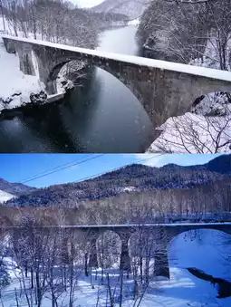 Remains of the Taushubetsu River Bridge in Kamishihoro Town A concrete arch bridge of the former JNR Shihoro Line It is beginning to crumble year by year, and there is no telling when it will disappear 💦 In winter, the lake freezes over and you can walk up close, so you want to see it before it disappears!