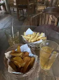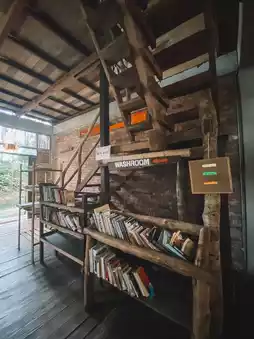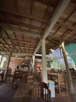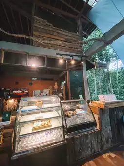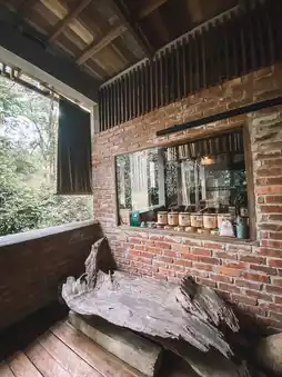 They use bricks and woods to blend in the nature and it turns out well. The menus for me was quite pricey and can be improve in the future. I really like the environment and location of this cafe.