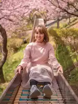 You can also see the beauty of Mt. Fuji and the cherry blossoms🌸. And the last point, if anyone comes to take pictures, don't forget to play the slide under the cherry blossom trees. It's very good.