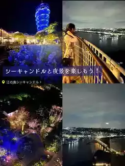 ▪️ It's a good deal to buy a set ticket for 3 facilities, Enoshima Escar, Enoshima Samuel Cocking Garden (nighttime), and Enoshima Sea Candle for ¥1,100! ▪️ If you come by train, you will be walking quite a bit, so wear comfortable clothes! ▪️ There is a lot of traffic around Enoshima and Shonan. Especially during the day on weekends! To avoid the crowds, we recommend coming by train or on a weekday.